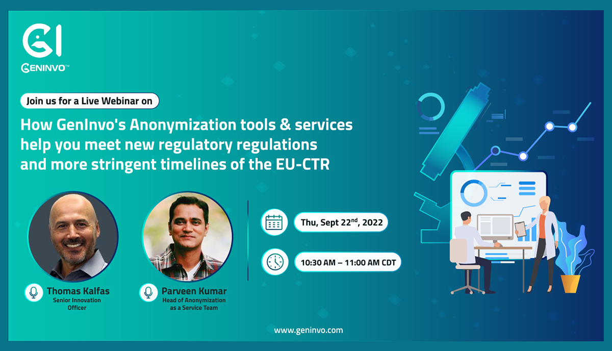 Join GenInvo’s live webinar on ‘How our Anonymization tools & services help you meet new regulatory regulations and more stringent timelines of EU-CTR’