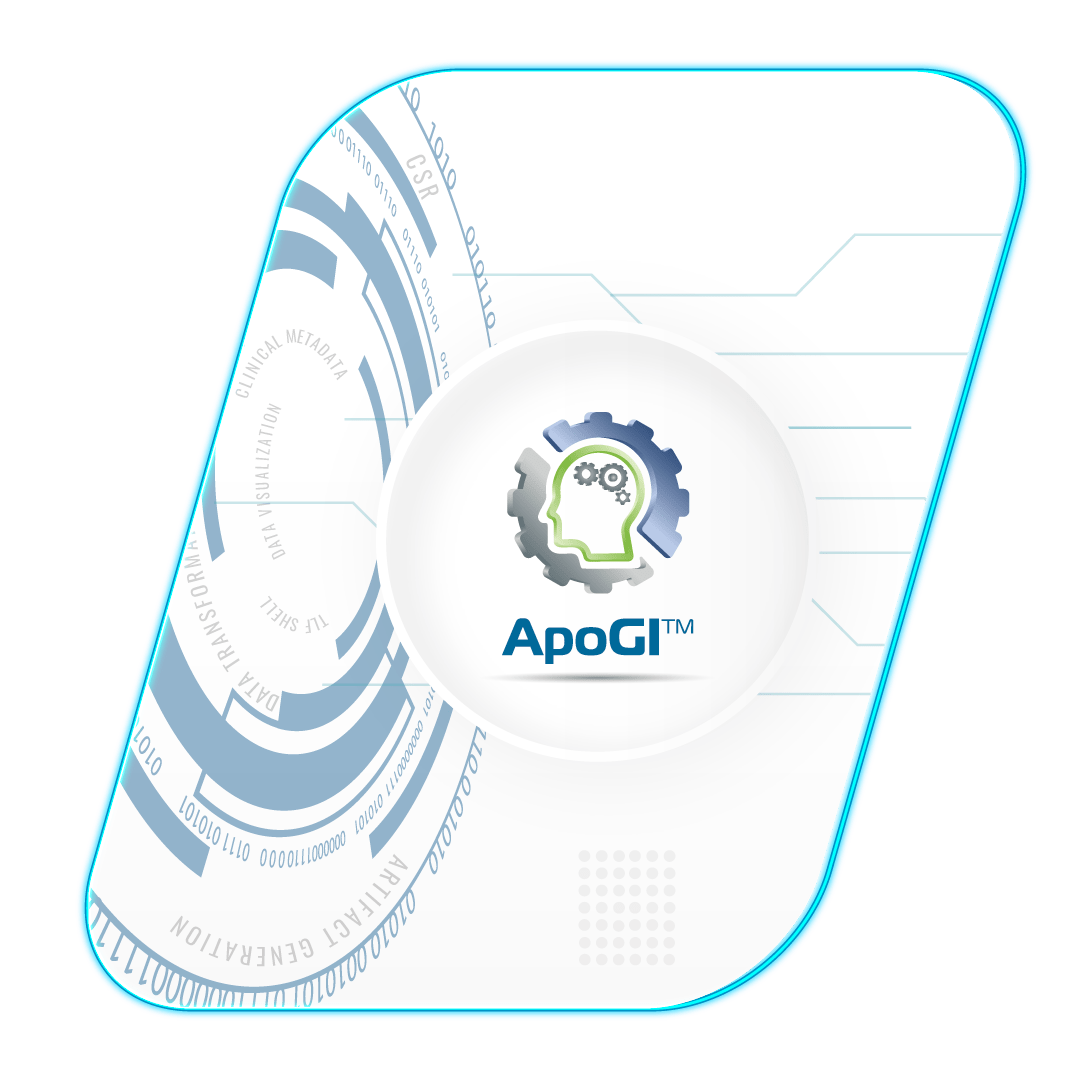 ApoGI™- Metadata Management Tool, is an integrated, automation platform that leverages AI (Artificial Intelligence) and ML (Machine Learning) and puts focus on standards and metadata management to streamline processes and the generation of artifacts typically associated with the clinical study lifecycle.