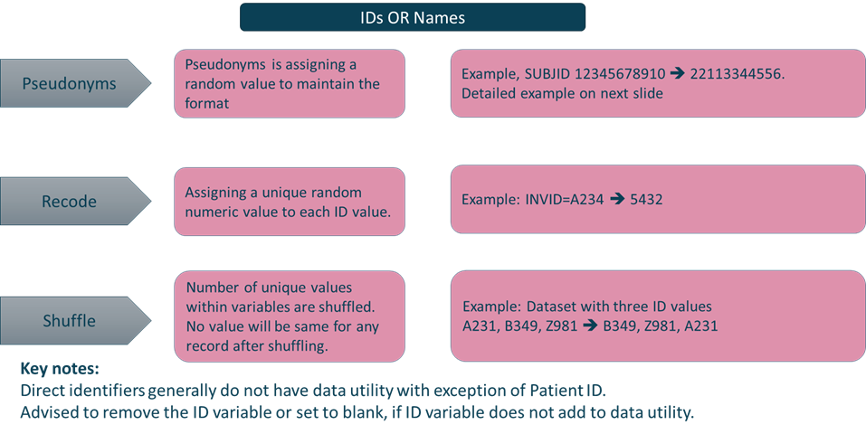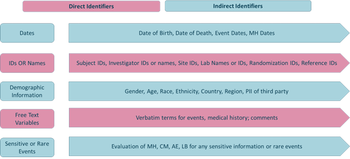 Direct Identifiers in dataset like Subject IDs, Investigator Name etc could lead to identification of subjects. This violates Data Protection Acts worldwide to protect personal information of individuals.