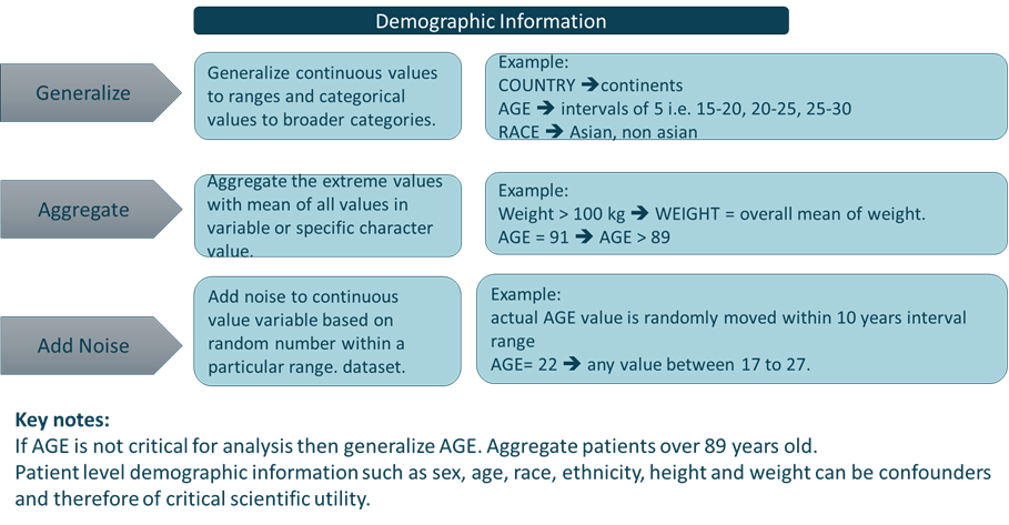 This leads to need for anonymizing the clinical data so that there is no possibility to identify any individual. As ARTICLE 29 DATA PROTECTION PARTY states that data is anonymized if there is no possibility to single out an individual, link the information to identify and infer any information on particular individual with some probability above acceptable threshold: